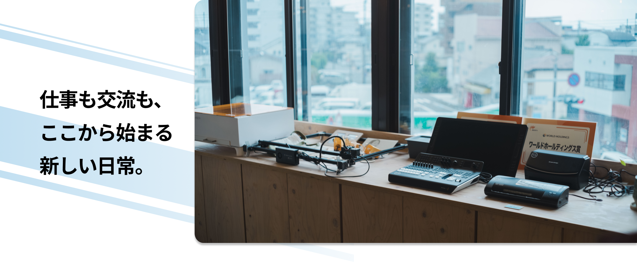 - ミーティングルーム(8名) 1時間 ¥1,500 (平日9:00-19:00,土10:00-16:00)